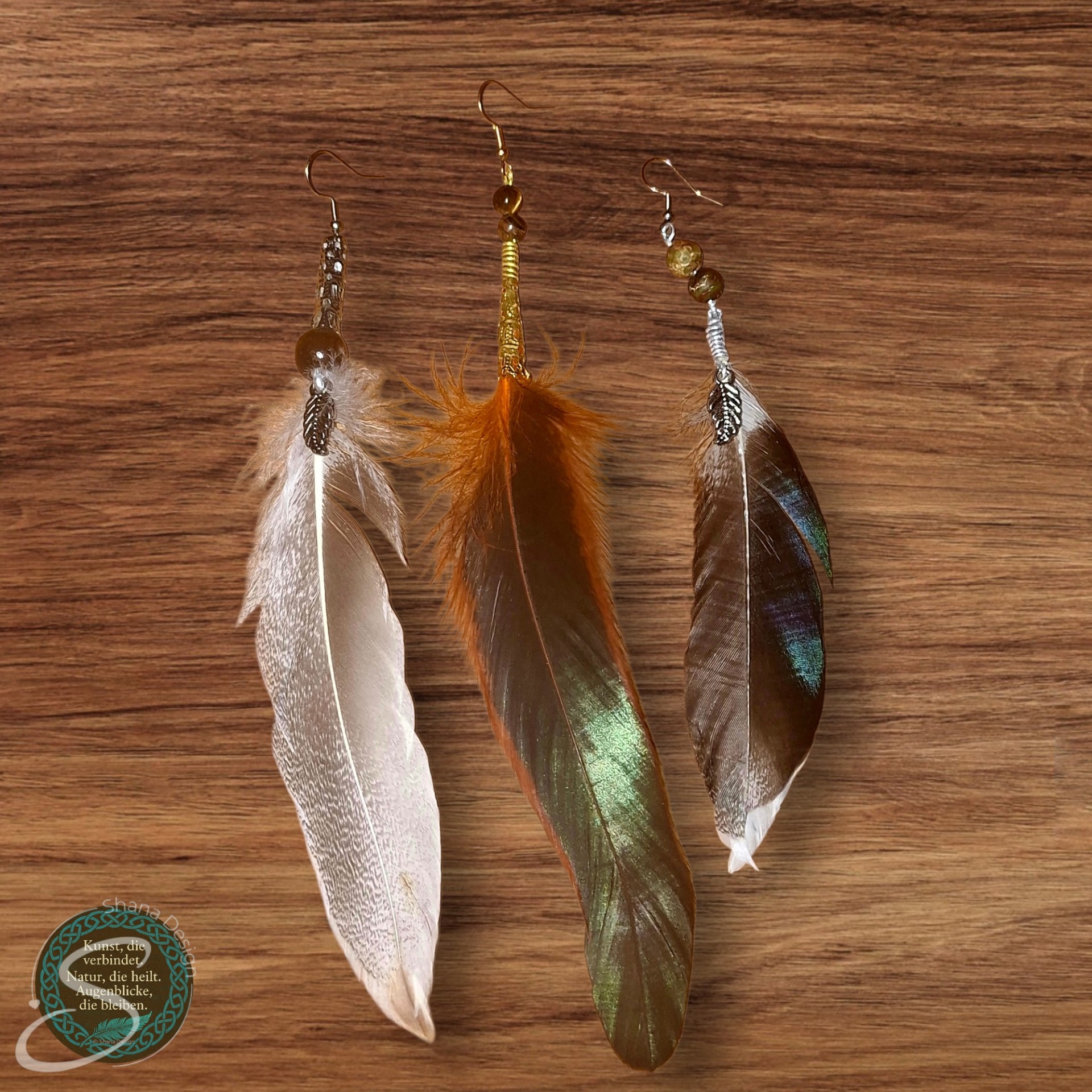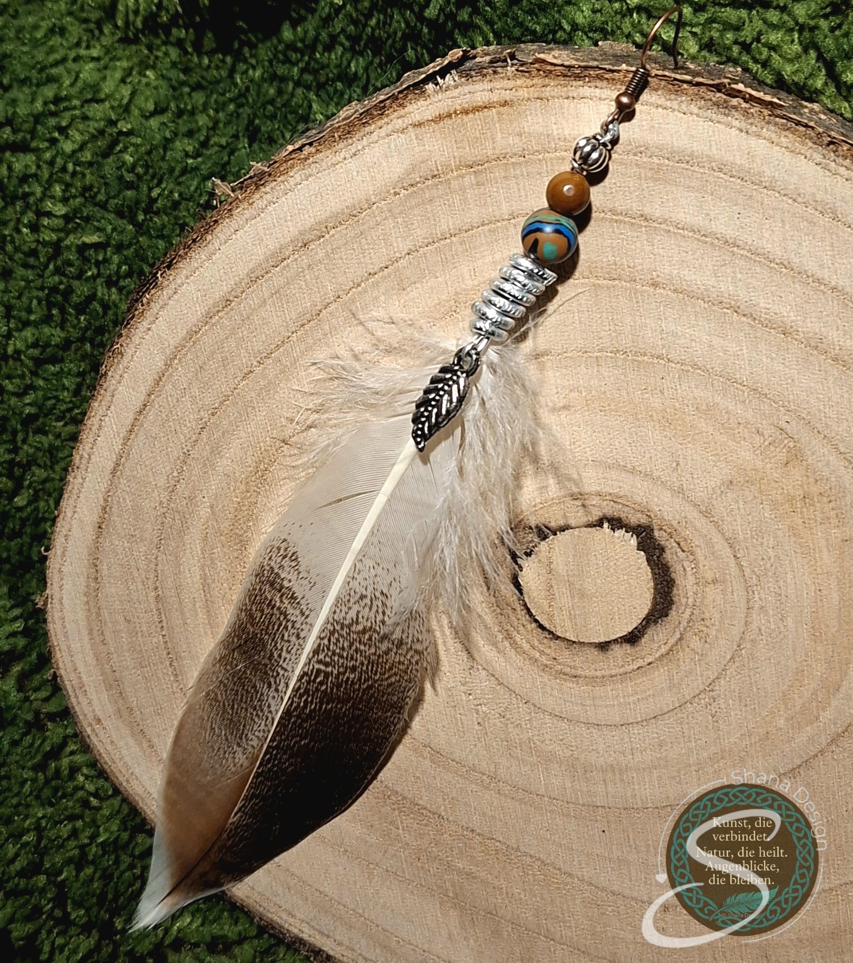 Ein Hauch von Wildnis, getragen in deinem Alltag. Feder, Metall und Stein - verbunden zu einem kleinen Talisman.